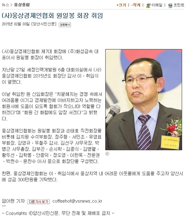 (자)웅상 경제인협회 제7대 회장 취임 페이지 정보 NAME MANAGER DATE 15-05-27 15:08 본문 (자)웅상 경제인협회 제7대 회장 취임 PREV NEXT LIST